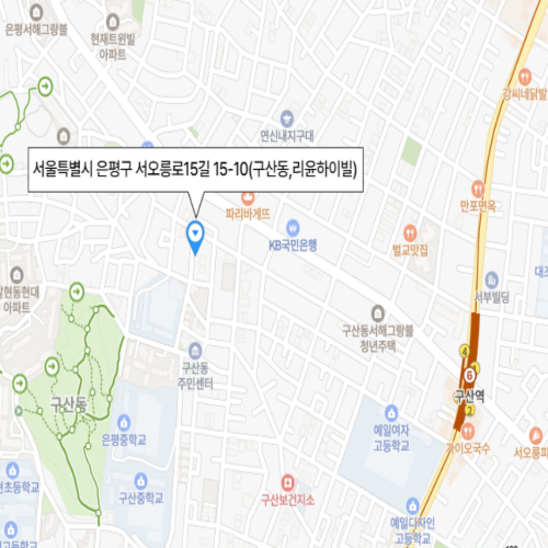 - 주소: 서울특별시 은평구 서오릉로15길 15-10 (구산동, 리윤하이빌)